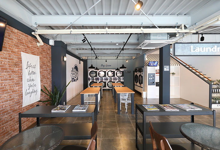 お洒落なコインランドリーを全国に展開しているランドリープレス様の新店舗のコンセプト設計と内装デザイン、装飾を担当しました。